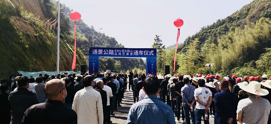 4月29日上午九点三十分,由衢交集团承建的花彩小镇翁梅至蒲塘通景公路通车仪式在柯城区九华乡大荫山项目半山隧道口隆重举行。仪式由柯城区副区长吴伟红主持,区委副书记、区长蒋国强致辞,区交通运输局局长陈志忠介绍通景公路建设概况,沿线群众代表发言,衢州市副市长、区委书记徐利水宣布翁梅至蒲塘通景公路建成通车。衢州市交通运输局副局长袁立峰、柯城区人大、区政府、区政协、区宣传部主要领导、区交通运输局、区文旅体局、石梁镇、九华乡、万田乡等各有关部门主要负责人、沿线群众代表、项目建设、设计、施工、监理单位代表约二百多人参加了通车仪式。衢交集团总经理肖华勇、党总支部书记方志平、项目部经理童建龙等代表施工单位参加了通车仪式。