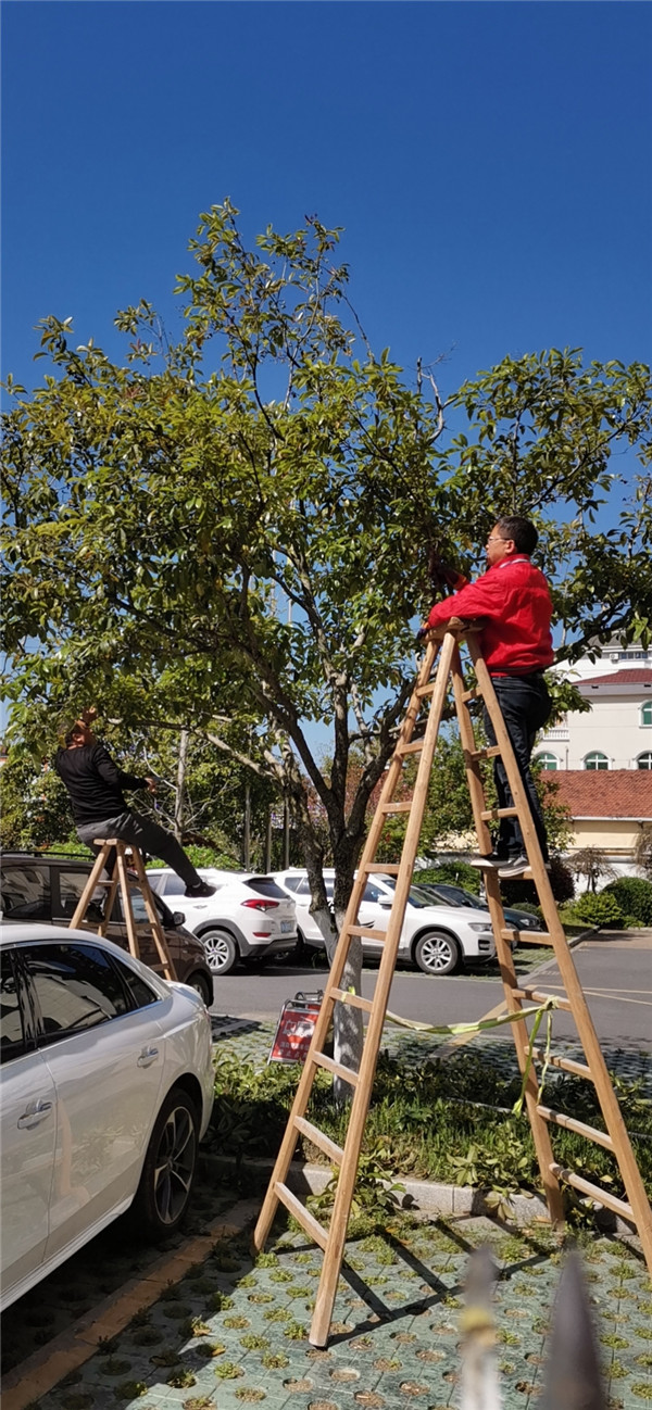 在公司大院绿化带里义务劳动现场,大家边聊天边除草,有的用手拔草、有的用锄头锄草。绿化业余爱好者、法务部经理童俊站在高空作业车上用锯子锯大树树枝。大家不怕脏、不怕累,干劲十足,通过上午和下午二个多小时的劳动,绿化带里的杂草、垃圾被清理的干干净净,树枝变得窈窕多姿,土地也变得松软,使大家感到劳有所获。