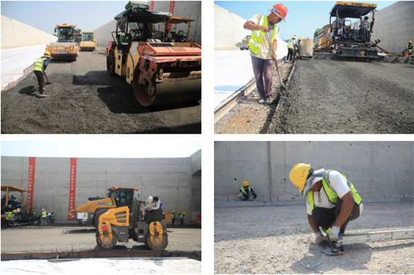 面对高温施工带来的双重考验,项目团队积极应对,科学合理安排作业时间,配足防暑物资,搭建现场休息区,进行防暑施工安全交底培训。同时,为确保高温下混合料符合规范要求,从拌合、运输、施工到养护全过程中,采取多项有效措施避免了高温对混合料质量的不利影响,使成型路段各项数据达到规范要求,有效保障了路面工程质量。