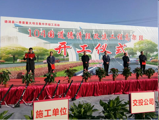 104国道德清段改建工程项目土建第2标段开工2018年2月23日上午9点,德清县一季度重大工程集中开工活动在衢交集团承建的104国道德清段改建工程项目土建第2标段施工现场隆重举行。会场两边整齐停放印有“衢交集团”字样