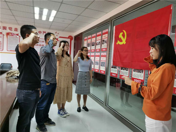 “我志愿加入中国共产党,拥护党的纲领,遵守党的章程,履行党员义务,执行党的决定,……”10月13日下午,衢交集团党总支部在党员活动室举行新党员集体入党宣誓仪式,赵学君、沈琪、邵桂萍、刘晨四位新党员佩戴党徽