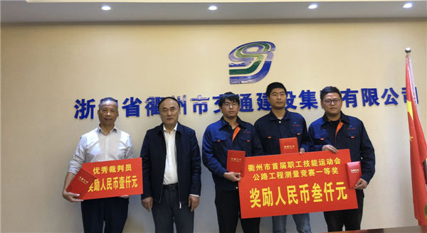 嘉奖仪式上,总经理肖华勇宣读了《关于对在衢州市首届职工技能运动会竞赛中获奖的集体和个人嘉奖的决定》文件,而后,董事长李元水为荣获衢州市首届职工技能运动会公路工程测量项目竞赛集体一等奖职工何春林、余孟嘉、王遥城、优秀裁判员徐国民颁发了嘉奖证书和奖金。
