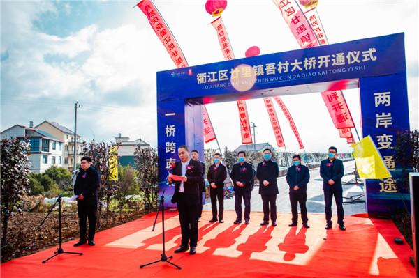 1月28日上午10时,衢交集团承建的衢江区廿里镇吾村大桥正式通车仪式在吾村大桥里屋段举行。仪式由廿里镇党委副书记、镇长刘俊峰主持。衢州市工商联党组书记陈水清、衢江区区委常委、组织部长朱永平、区人大副主任童土善等领导到场祝贺,衢交集团总经理肖华勇作为嘉宾应邀参加。区政府副区长胡志彬致辞,沿线村民代表、山下村、里屋村支部书记分别发言,衢江区区委常委、廿里镇党委书记周水忠讲话并宣布吾村大桥正式通车!