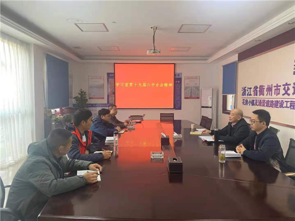 3月3日下午,衢交集团党总支部书记方志平、党总支部委员兼二支部书记袁新蕾到花彩小镇及通景公路建设工程PPP项目部宣贯十九届六中全会精神并指导项目部党建文化创建工作。项目部全体党员、职工参加了宣贯会。