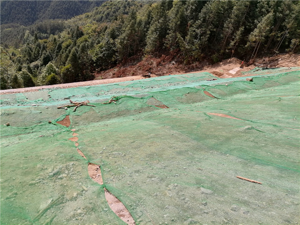 拾级而上,每隔一段路就有一个施工点,有的在清理边坡上的浮石,有的在清理渣土,有的在砌挡土墙,一派有序繁忙景象。在一处大约六米左右高已砌好的挡土墙的下面一台挖掘机正在进行整理渣土作业,在旁边指挥作业的汪师傅介绍说,我们这几天在忙着整理施工过程中产生的渣土,我们要对上边坡或下边坡的进行及时平整,平整后盖上绿网,再在上面播下草籽,谷雨过后,降雨天多,天气温和湿润,适合草籽发芽,过段时间就会长出来,到时绿绿的草就和山林融汇在一起了,很好看的,到目前草籽就买了一万多元呢。