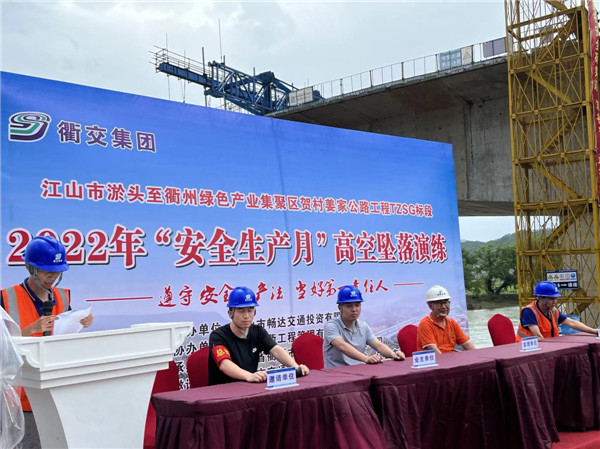 为增强项目部全体人员的安全意识,提高项目部处理突发事故应急救援能力。6月30日,江山市淤头至衢州绿色产业集聚区贺村姜家公路工程TZSG标段项目部(简称桑淤大桥项目部)举行高空坠落应急救援演练。江山市交通运输局、江山市畅达交通投资有限公司、项目监理办等有关负责人到场观摩。
