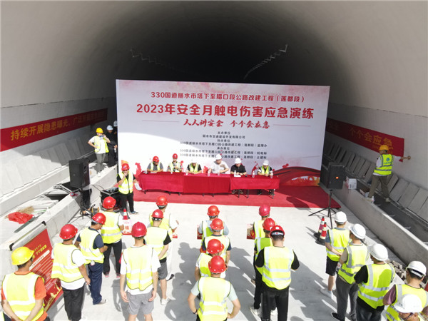 为认真落实2023年全省交通运输系统“安全生产月”活动方案要求和衢交集团关于“安全生产月”活动通知精神,6月25日下午,衢交集团承建的330国道丽水塔下至腊口段改建工程(莲都段)1标项目部组织开展了触电应急救援演练活动。业主、监理部、项目部土建标、项目部机电标等参加了本次活动。丽水市交通建设开发有限公司副总经理周济民、徐璟等领导到现场进行了指导。