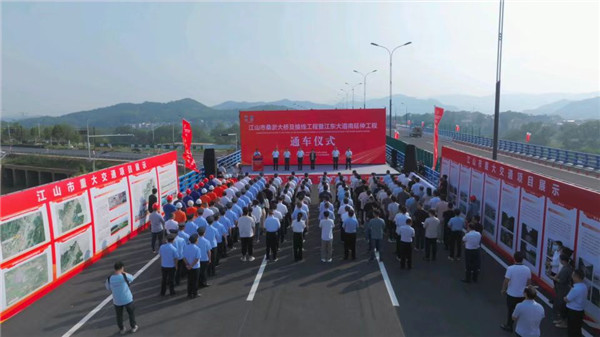 通车仪式由江山市副市长毛舒峰主持,江山市市委副书记、市长徐明峰致辞,市委书记朱素芳宣布江山市桑淤大桥暨江东大道南延伸工程正式通车!