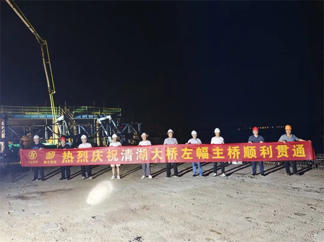 8月2日凌晨,清湖大桥左幅5#墩现浇箱梁桥面灯火通明,施工现场人头攒动,业主、设计、监控量测、监理等单位代表与项目部技术人员在现场共同见证了清湖大桥左幅主桥合拢的全过程。