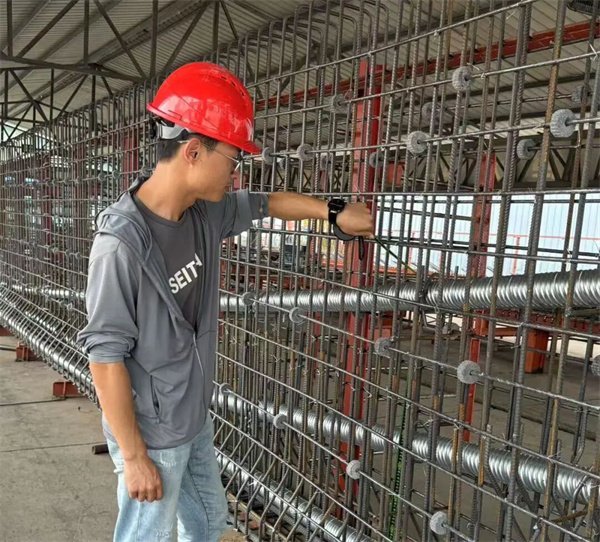每天清晨,徐邵佳俊的第一项工作就是对进场材料进行严格检测。他手持检测仪器,仔细筛查每一批钢筋、水泥等原材料。“这批钢筋的屈服强度差5MPa,必须复检!”正是这种一丝不苟的态度,让他多次将不合格材料挡在生产线之外。
