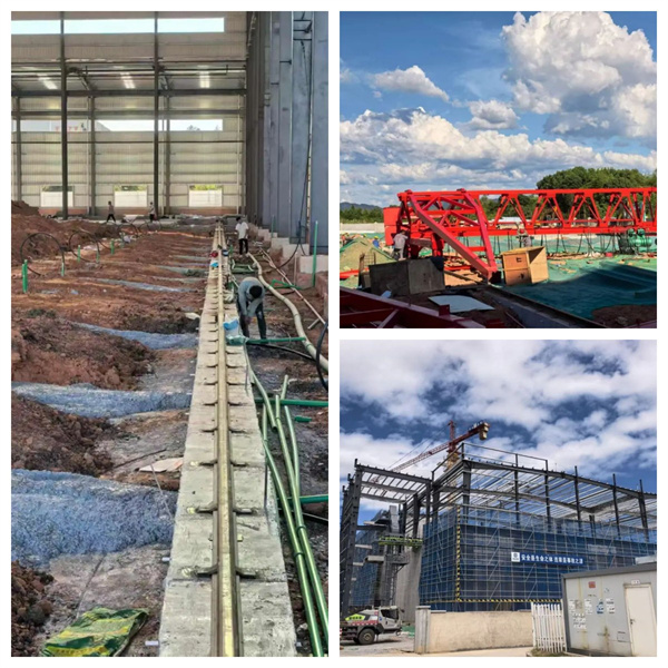 土建施工率先突破,宿舍楼、研发楼顺利结顶,特别是高位料仓的及时交付,为后续设备与钢结构安装腾出关键空间。钢结构施工紧随其后,梁板场车间交付后,迅速转战混凝土拌合车间,主框架吊装如火如荼,计划月底完成主框架拼接;梁板场车间,轨道施工即将在8月底收尾,台座附属工程水电气管路同步预埋,龙门吊安装已启动,预计9月中旬有望看到项目雏形。