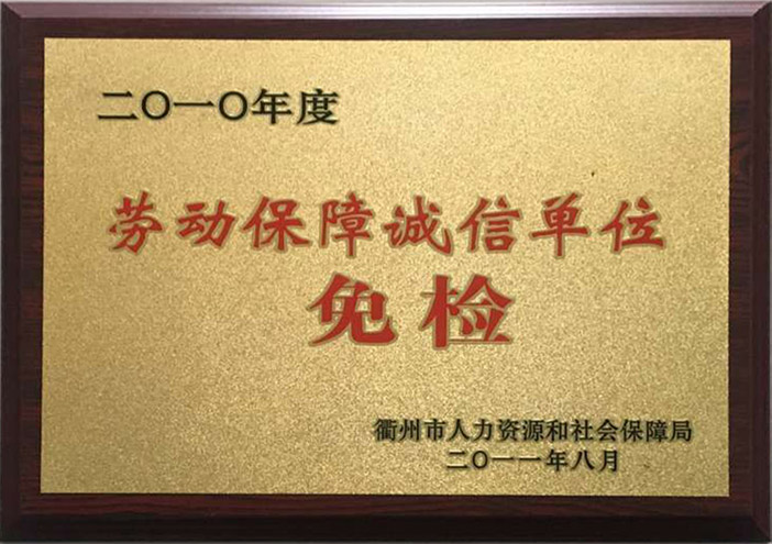 2010年度劳动保障诚信单位免检