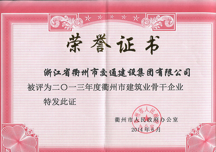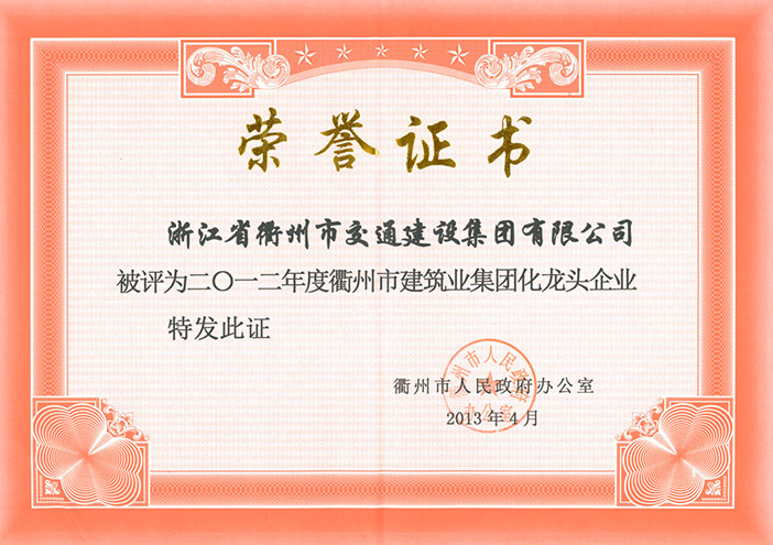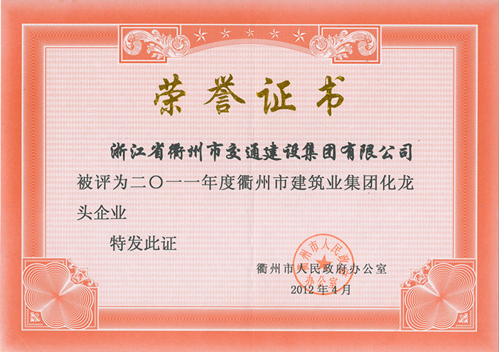 2012年度衢州市建筑业集团化龙头企业