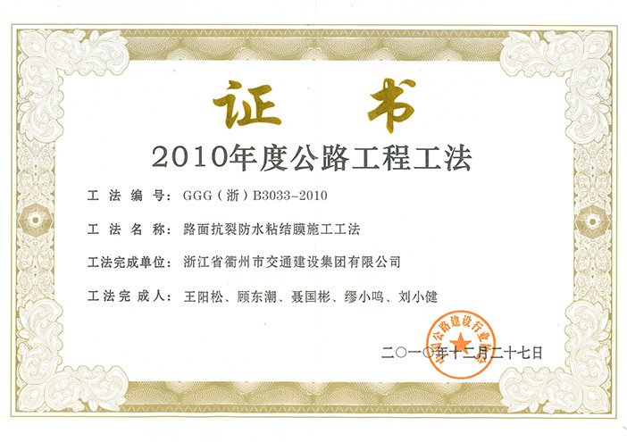 2010年度公路工程工法-路面抗裂防水粘结膜施工工法
