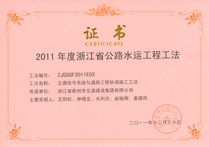 2011年度浙江省公路水运工程工法——交通信号系统与道路工程协调施工工法