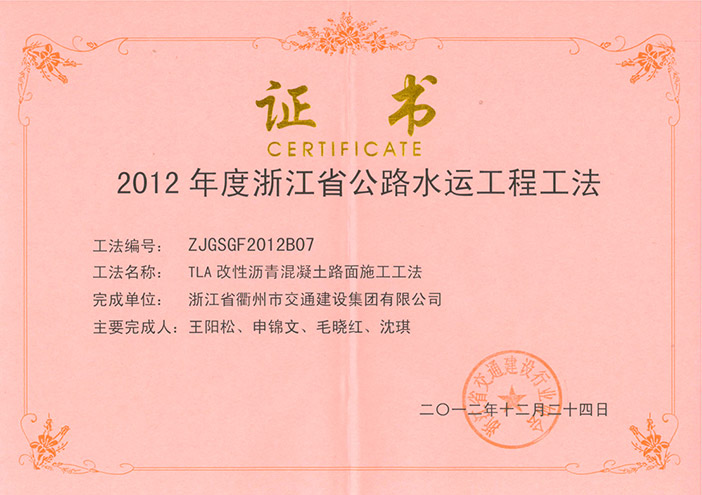 2012年度浙江省公路水运工程工法——TLA改性沥青混凝土路面施工工法